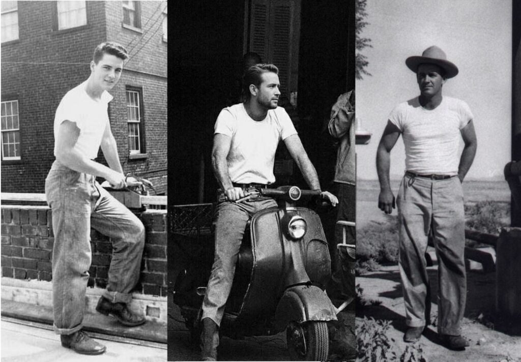 白Tシャツの起源は、20世紀初頭に遡る。元々はアメリカ海軍が下着として採用したものであり、吸汗性と快適性を高めるための実用的なインナーであった。その後、第二次世界大戦を経て、除隊した兵士たちがこれをアウターとして着用し始める。彼らが持ち帰ったこのシンプルなTシャツは、やがてアメリカの若者文化に浸透していく。特に、1950年代にはマーロン・ブランドやジェームズ・ディーンといった映画スターが、反骨精神を象徴するアイテムとしてスクリーンで着用したことで、そのイメージは決定的なものとなった。